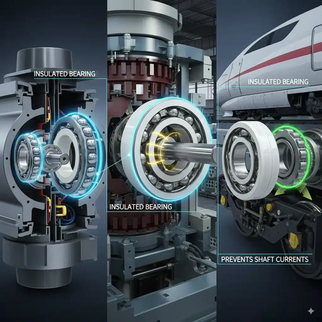 TFL’s insulated bearings, with robust aluminum oxide ceramic coatings, are vital for railway traction motors. They establish a powerful dielectric barrier, effectively blocking damaging shaft currents from Variable Frequency Drives (VFDs), thus preventing electrical erosion and premature equipment failure.