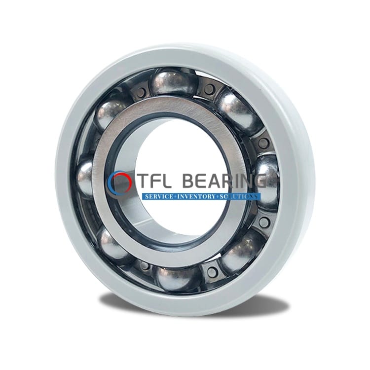 TFL specializes in electrically insulated deep groove ball bearings. The 6320/C4VL0241 features a specialized ceramic aluminum oxide coating on the outer ring. This coating effectively blocks shaft voltage and stray currents generated by inverters (VFDs) from passing through the bearing, preventing electrical corrosion. This significantly extends equipment life and improves reliability. Compared to standard bearings, it is far better suited for modern variable frequency drives, generators, and industrial fans.